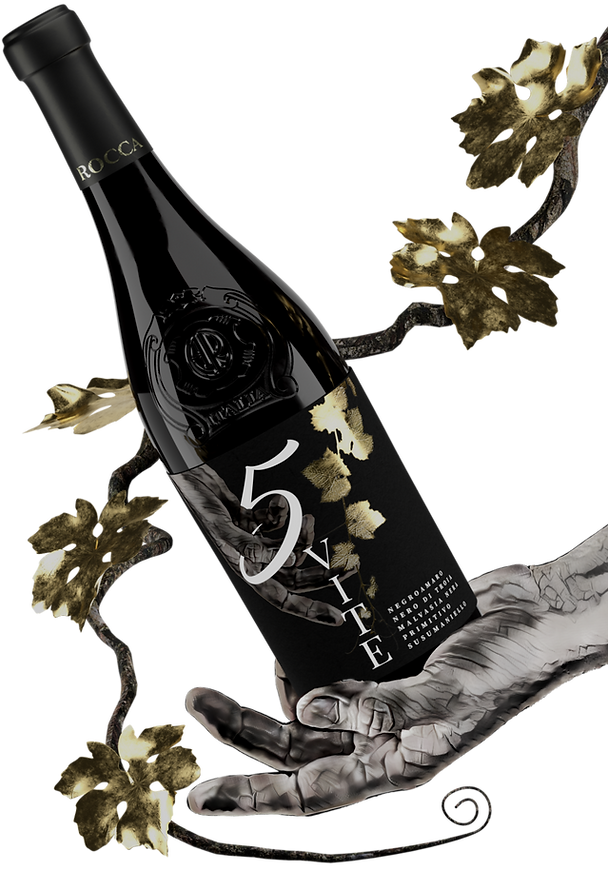 “5 VITE” si contraddistingue per la straordinaria armonia gustativa, frutto della complementarietà dei diversi vitigni, capaci di fondersi per creare un assemblaggio unico nel suo genere: i tannini morbidi ed eleganti del Negroamaro, la trama fitta del Nero di troia ed i delicati profumi della Malvasia Nera, si combinano perfettamente con il frutto autentico del Primitivo ed all’intensità aromatica del Susumaniello.